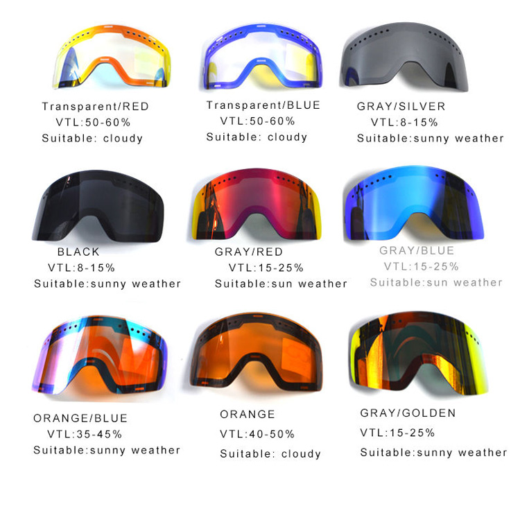 Незамъгляващи се персонализирани магнитни UV 400 стилни очила за ски сняг. Вашето първокласно решение за продажба на едро за професионални зимни спортове. Тези ски очила разполагат с огледални лещи против замъгляване с персонализирана магнитна UV400 защита. Стилният двуслоен дизайн осигурява несравнима яснота и комфорт за всички приключения със ски на сняг.