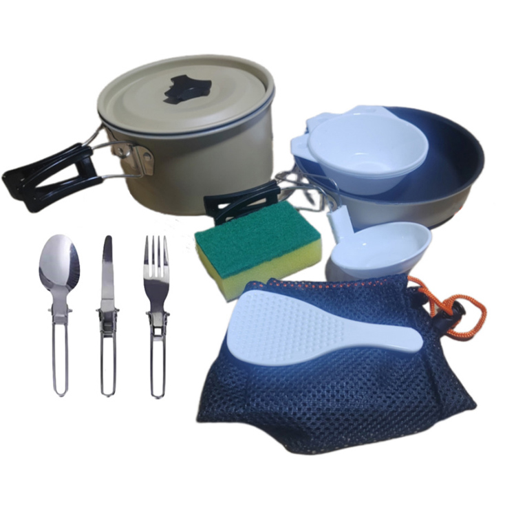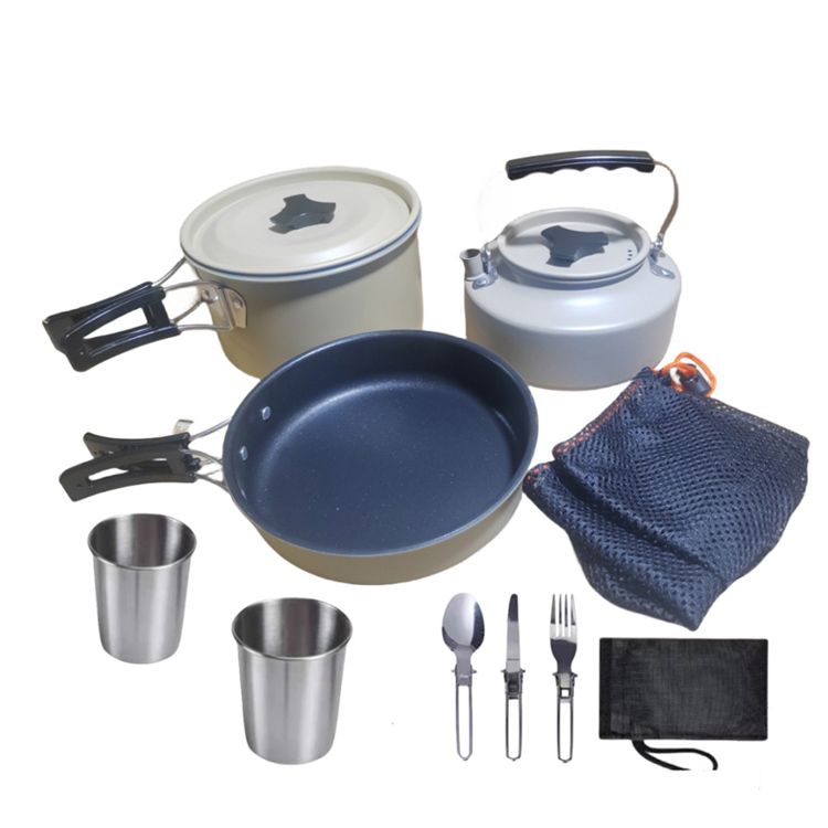 Къмпинг комплект съдове за готвене с чайник Комплект преносими тенджери за готвене