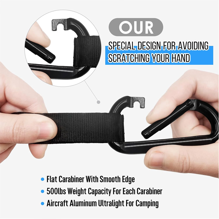 Включва две 10-футови регулируеми ленти за дърво с 15+ точки на примка и алуминиеви карабинери от военен клас, позволяващи сигурно монтиране на дървета на разстояние от 12 до 25 фута едно от друго, без да се повреди кората.