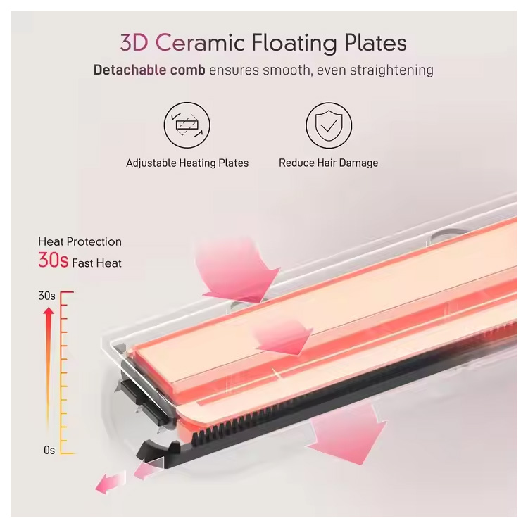 Тази преса използва инфрачервена топлина, за да проникне нежно в ствола на косъма, загрявайки косата отвътре навън. Това минимизира увреждането на повърхността, като същевременно заключва влагата, което води до по-гладка, по-блестяща коса с подобрена здравина и еластичност.