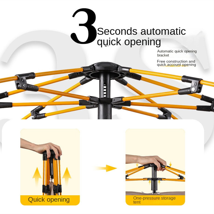 Висококачествена водоустойчива автоматична външна палатка за 2, 4, 6 места. Изживейте безпроблемно къмпингуване с нашата висококачествена автоматична палатка. Проектиран за 2, 4 или 6 души, той включва превъзходна двойно дебела оксфордска тъкан за отлична водоустойчива и ветроустойчива защита. Вашият надежден подслон за приключения на открито при всякакви метеорологични условия.