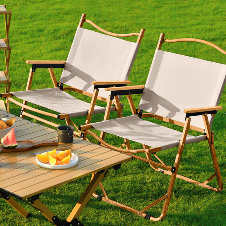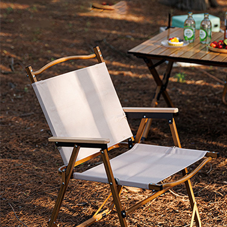 Висококачествен лек сгъваем стол за къмпинг от неръждаема стомана. Вашето първокласно решение за сядане на открито. Този висококачествен къмпинг стол съчетава лека рамка от неръждаема стомана с парапети от масивно дърво за превъзходен комфорт. Перфектен за плажни излети и почивка в градината, той предлага както издръжливост, така и елегантна преносимост.
