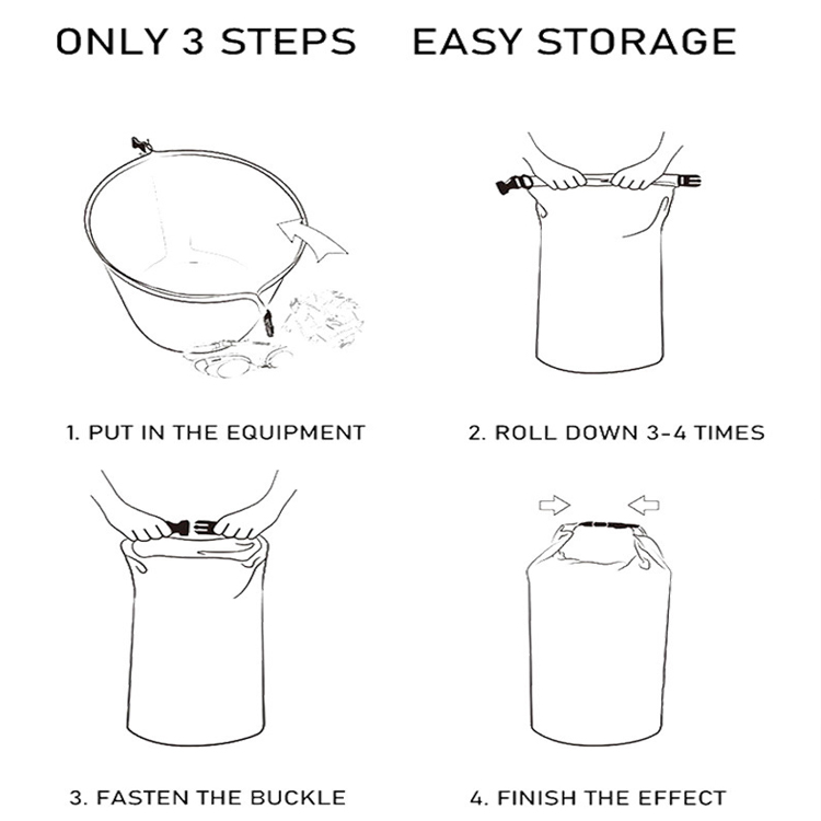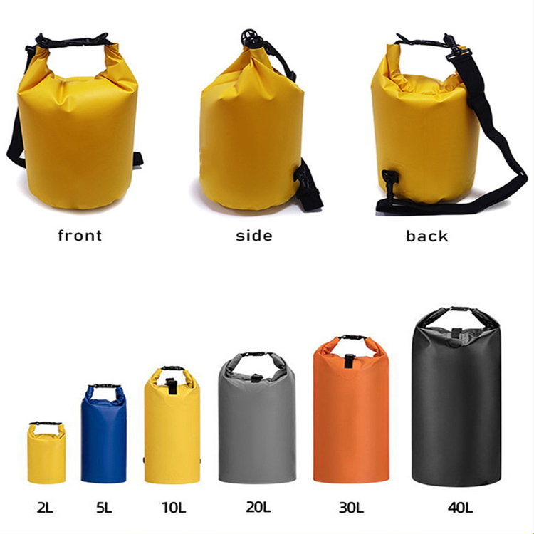 Преносими сгъваеми 2L 5L 10L 20L 40L водоустойчиви чанти. Вашето най-добро водоустойчиво решение за съхранение за водни приключения. Тези сухи торби с отпечатано лого разполагат с множество опции за капацитет от 2L до 40L. Перфектни за плажни пътувания, рафтинг и дейности на открито, те осигуряват пълна защита при сухо съхранение във всяка среда.