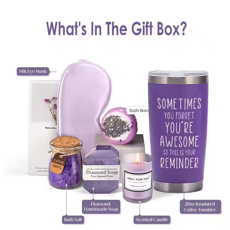 Всяка подаръчна кутия Lunaire включва красиво координирана селекция от артикули като чаша от неръждаема стомана, ароматерапевтична свещ, сапун с форма на диамант, сухи цветя и поздравителни картички. Този комплект, готов за подарък, ви спестява време, като същевременно предоставя цялостно, искрено изживяване за всеки повод.