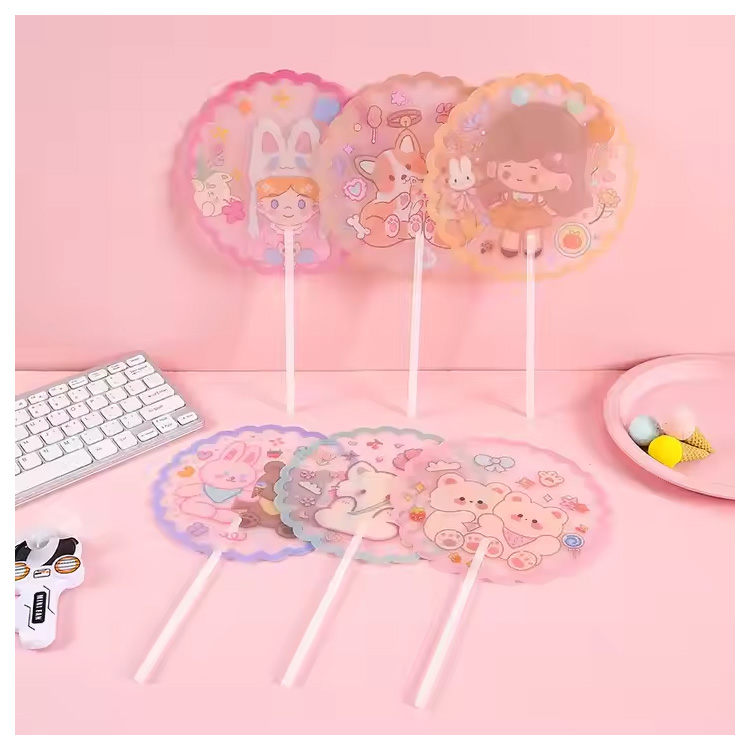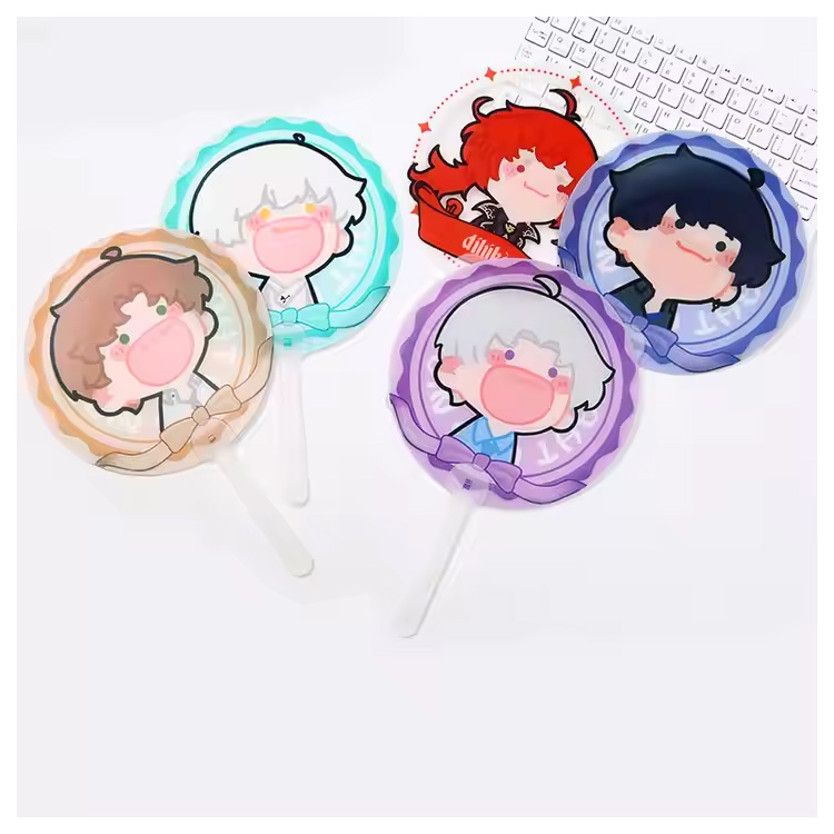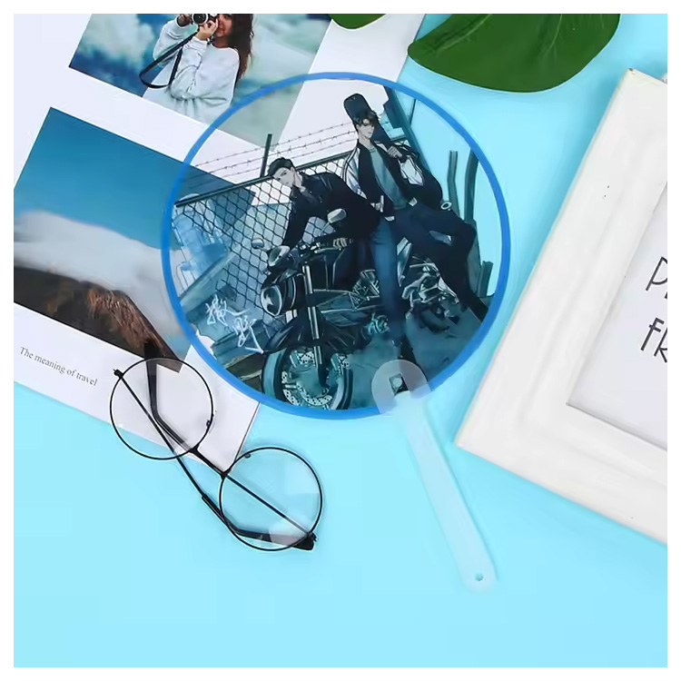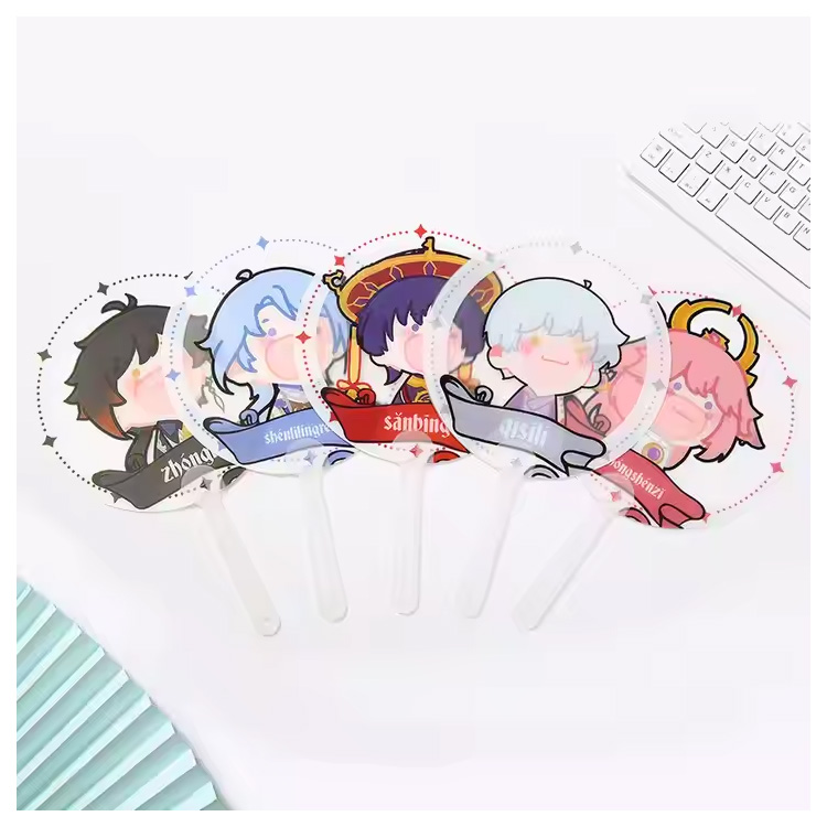 Мини аниме звездни пластмасови прозрачни водоустойчиви ръчни ветрила. Персонализирани аниме прозрачни пластмасови ветрила за ръце — леки, водоустойчиви и отпечатани с вашите любими герои или лого. Идеално за събития, концерти, промоции или сувенири. Забавен и практичен начин да останете готини със стил.