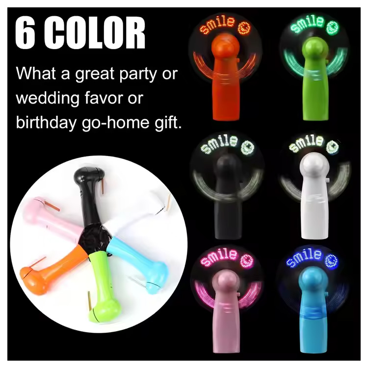 Нов мини преносим удобен вентилатор за батерии с персонализирани светодиодни съобщения. Мини преносим вентилатор за LED съобщения — компактен, захранван от батерии и персонализиран с превъртащ се текст. Осигурява хладен бриз, докато показва вашата марка или съобщение в ярки LED светлини. Идеално за събития, партита или промоционални подаръци.