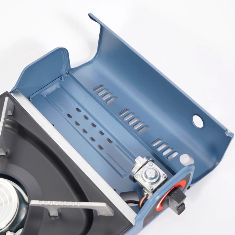 Преносима лека газова печка със син цвят бутан. Вашият идеален преносим спътник за готвене. Тази лека газова печка със син бутан предлага ефективна производителност за къмпинг, барбекю и готвене на открито. Отличаващ се с проста ръчна работа, той осигурява надеждна топлина и удобство при всички ваши приключения.