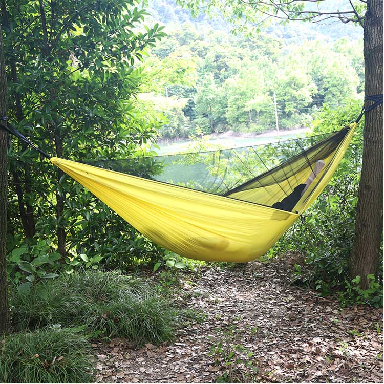 Разполага с 210T полиестерна мрежа против комари с подсилени ръбове и 70D найлоново тяло за хамак, създавайки перфектния баланс между дишаща защита от насекоми и издръжлива способност за носене на тежести.