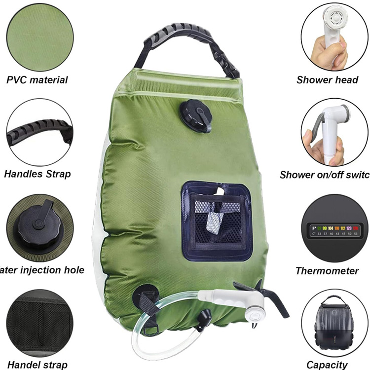 Със своя просторен обем от 20 литра, тази чанта за душ осигурява достатъчно топла вода за 2-3 души или многократна употреба, което я прави идеална за семейни къмпинги и групови приключения на открито.
