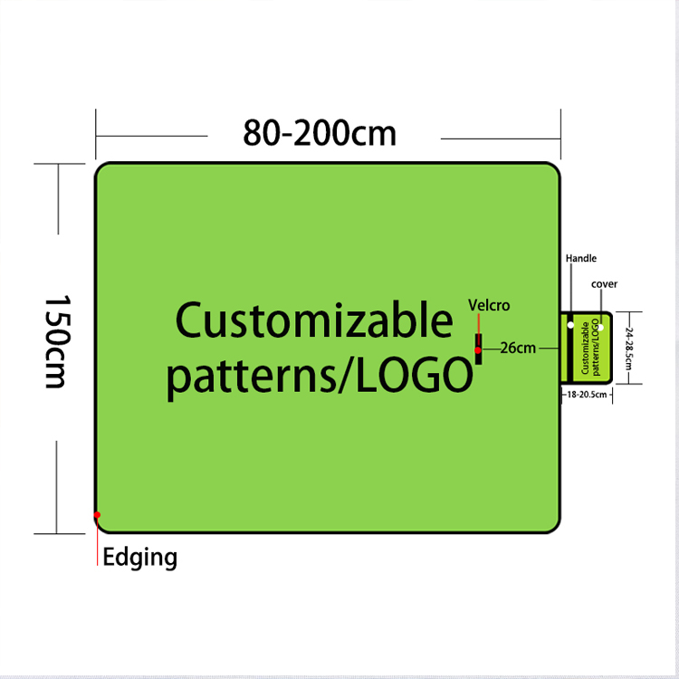 Аксесоари за къмпинг при пътуване Одеяло за пикник Персонализирана постелка за пикник. Вашият първокласен спътник за комфорт на открито. Тази подложка за пикник с възможност за персонализиране се отличава с голям, дебел дизайн с превъзходна водоустойчива защита. Експертно изработено за къмпинг и пикник, то се сгъва компактно за безпроблемно пренасяне при всичките ви приключения.