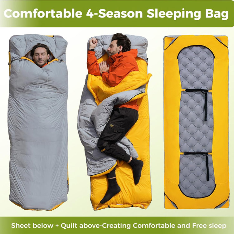 Преобразува се без усилие от традиционна чанта за мумия в универсален горен юрган с помощта на разделящи ципове по цялата дължина, приспособявайки се към различни предпочитания за сън и осигурявайки гъвкаво покритие при променливи температури.