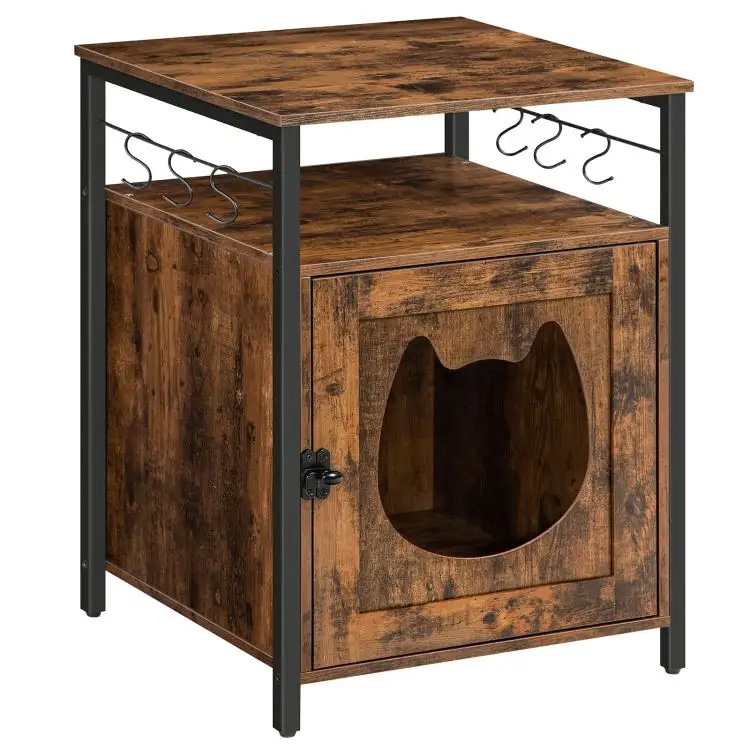 Изработена с висококачествено дърво и желязо, тази къща за котки е предназначена за издръжливост и дълготрайна употреба. Твърдата рамка може да се справи с теглото на кутията за отпадъци и да осигури стабилна структура на вашия домашен любимец да се наслаждава на частното си пространство удобно.